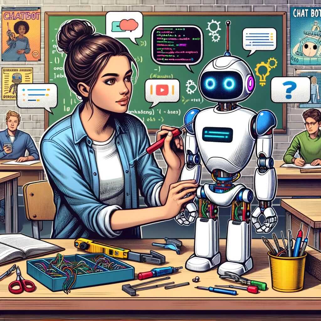 Dall-E Generated. Student building a robot.In today’s world, it is crucial for students to engage with technology not just as users, but as creators. This assignment is designed to bridge this gap, offering students a hands-on opportunity to delve into the world of AI and chatbot development. The goal is to go beyond just programming or prompting a bot by emphasizing the importance of understanding audience needs, harnessing the power of structured prompting, and respecting ethical considerations.