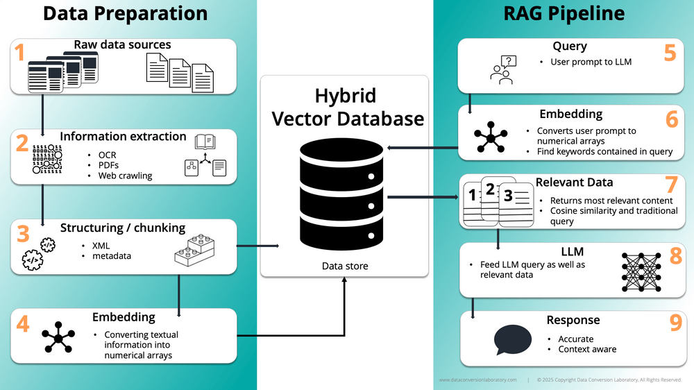 Retrieval-augmented generation (RAG) is a technique that allows LLMs to incorporate external information from a corpus of documents during the text generation process. RAG mitigates the hallucination problem by grounding LLM responses in verified data sources. The key components of text analytics—text preprocessing, natural language processing, entity extraction, and structuring data—play a critical role in this process. These techniques ensure that data fed into an LLM is clean, relevant, and structured to maximize the accuracy and reliability of the responses. By leveraging organizational knowledge and domain-specific datasets, RAG significantly enhances the performance and trustworthiness of LLM outputs.