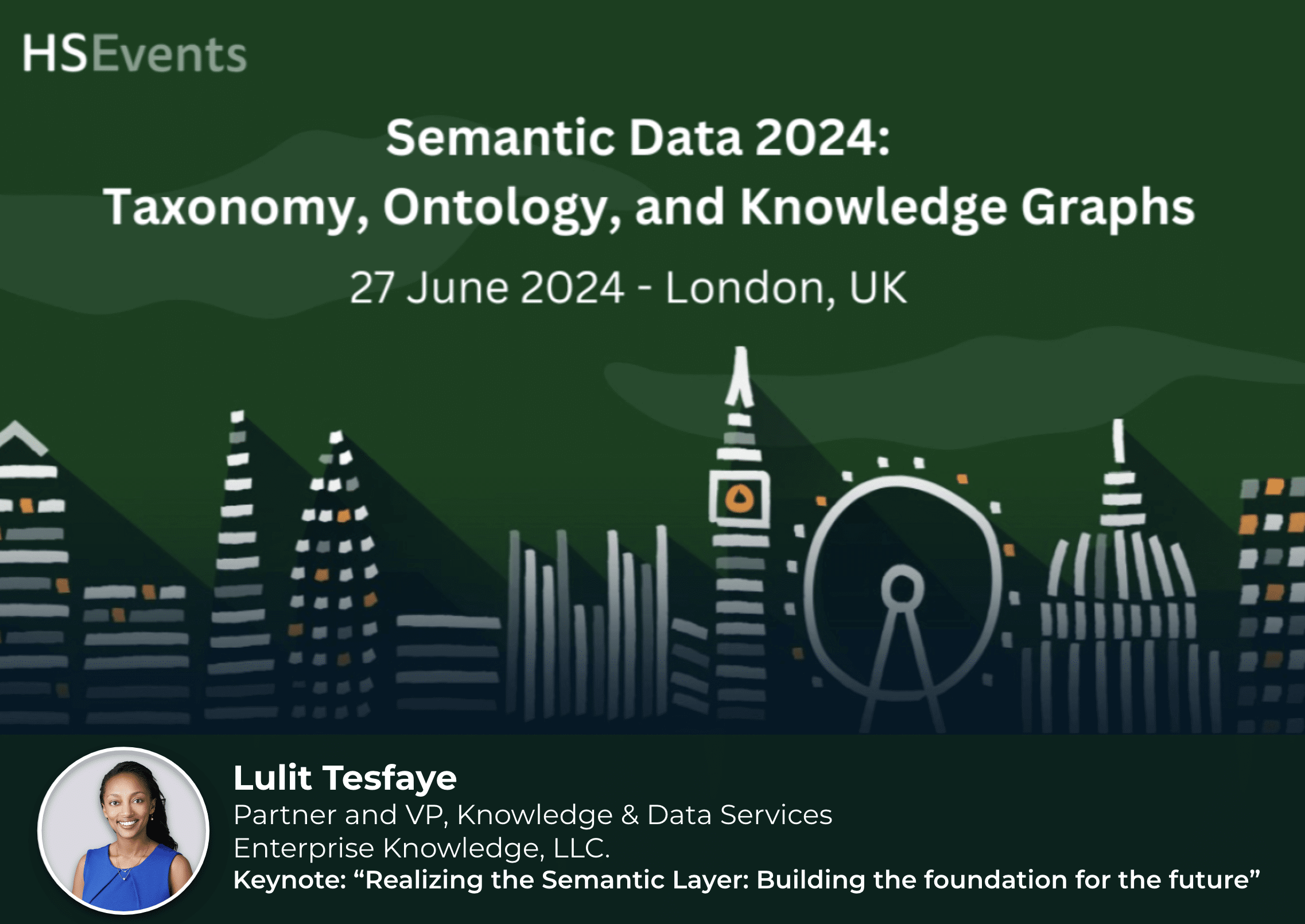 Lulit Tesfaye, Partner and Vice-President of Knowledge & Data Services at Enterprise Knowledge, will kick off the Semantic Data 2024: Taxonomy, Ontology, and Knowledge Graphs conference brought by Henry Stewart Events on June 27, 2024 in London.