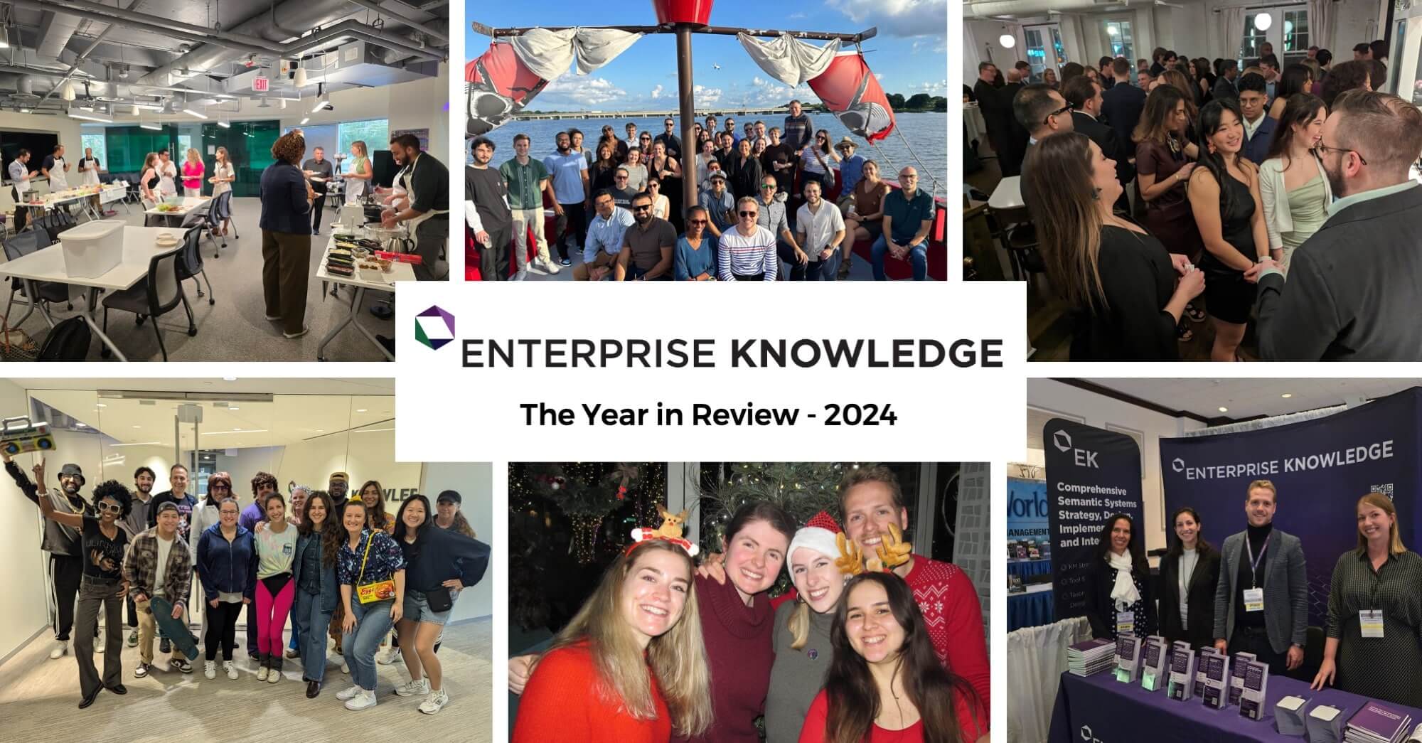 Entering the first full week of 2025, I’m happy to share the Enterprise Knowledge year in review for 2024. This has become a long-standing tradition, dating back to 2016. Every year this is a great reminder of how far we’ve come as an organization, the challenges we’ve overcome, and the ways we’ve chosen to lead the industry. For me, it is a great opportunity to reflect, thank our team for making EK what it is, and share some of our milestones and accomplishments with the community.