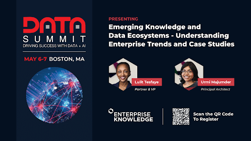 Enterprise Knowledge’s Lulit Tesfaye, Partner and Vice President of Knowledge and Data Management, and Urmi Majumder, Principal Data Architect, will present “Emerging Knowledge and Data Ecosystems – Understanding the Enterprise Trends and Case Studies” at the 2026 Data Summit Conference in Boston.