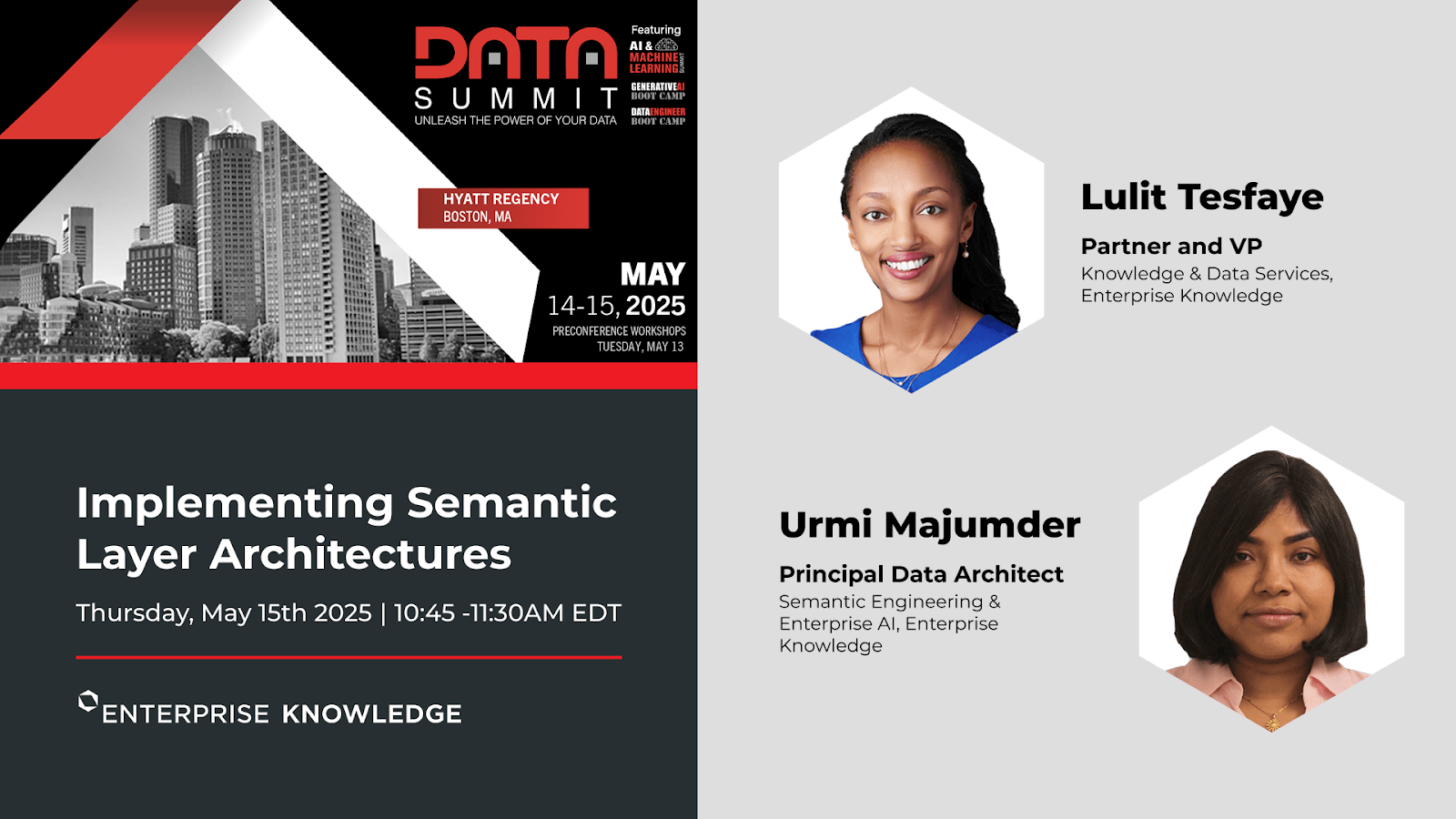 Lulit Tesfaye, Partner and Vice President of Knowledge and Data Services, and Urmi Majumder, Principal Data Architect, at Enterprise Knowledge, will be presenting at the Data Summit Conference in Boston on May 15th, 2025.