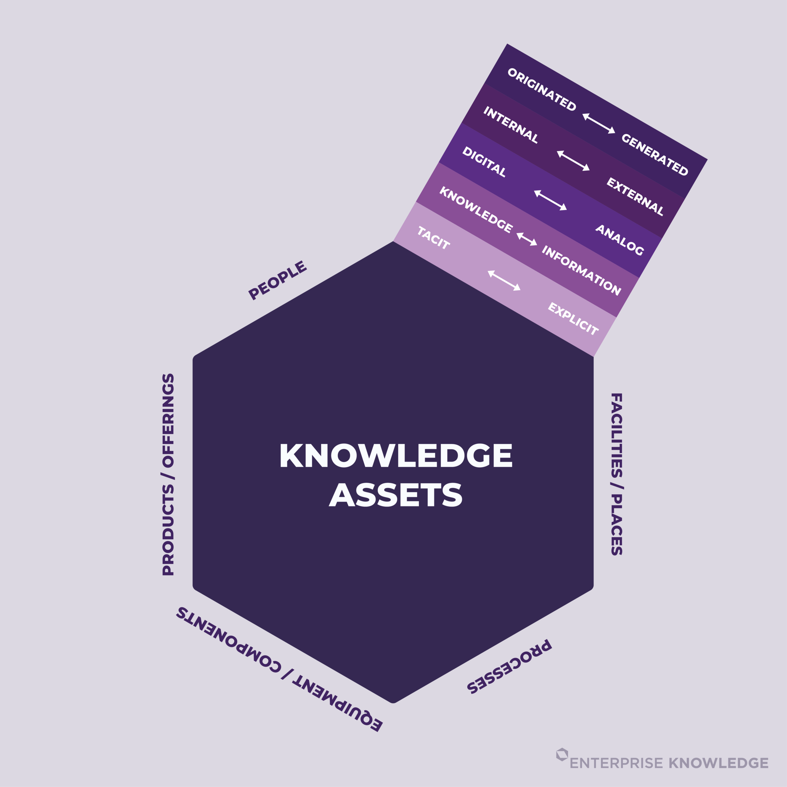 As part of our work, we’ve endeavored to help our clients understand the expansive nature of their knowledge, content, and data. The complete range of these materials can be considered based on several different spectra. They can range from tacit to explicit, knowledge to information, structured to unstructured, digital to analog, internal to external, and originated to generated.