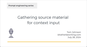 One of the most successful strategies for using AI is to pass in an abundance of source material that can augument and inform the AI's responses. In this tutorial, I cover strategies for gathering this material, including what types of documents to look for, optimal ordering, pitfalls to look out for such as outdated or slanted information, and more.