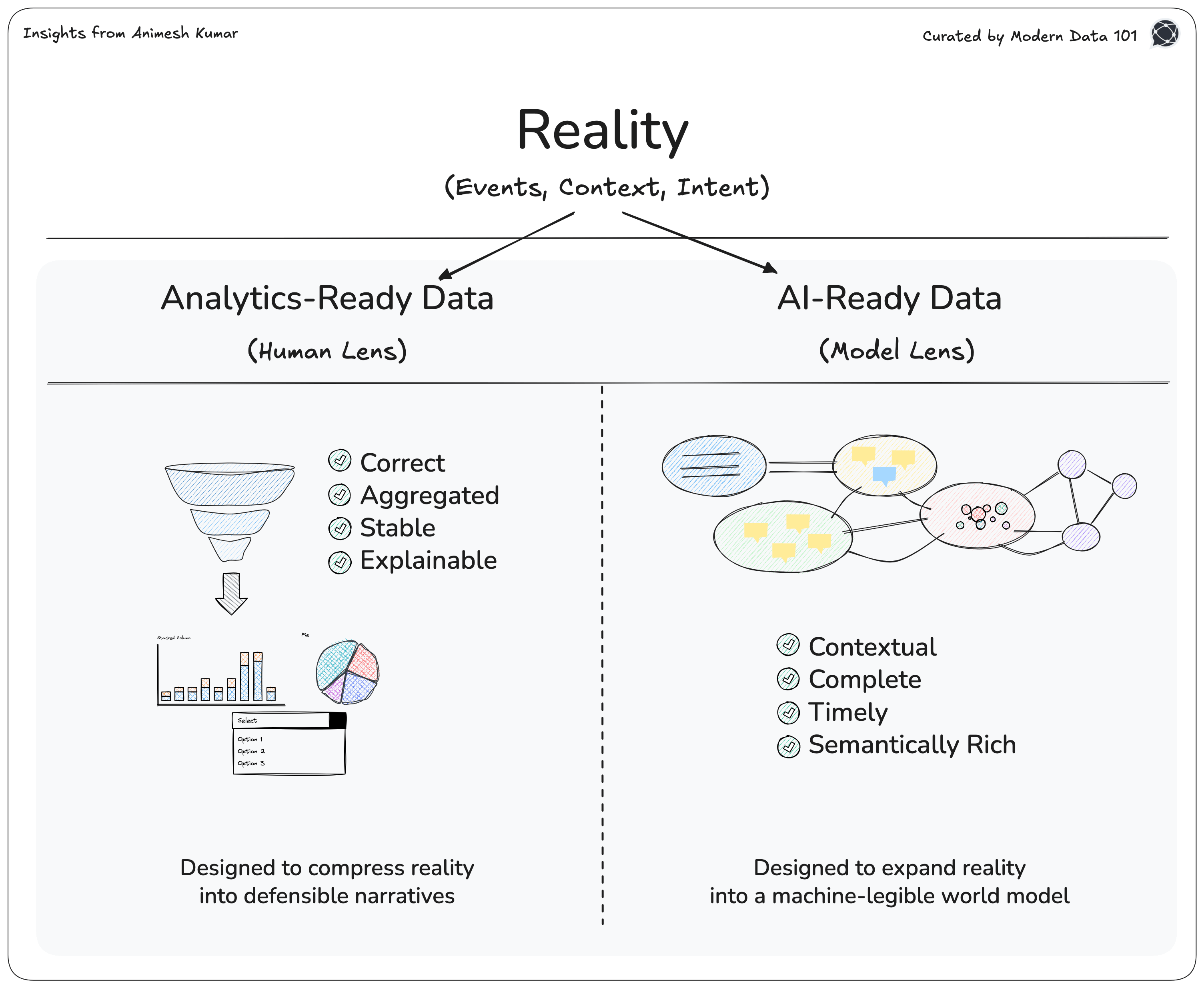 Before we dive in, we want to take a moment to thank you for being here with us as we step into 2026! The Modern Data 101 community exists because of your curiosity, your ideas, and your willingness to think more deeply about data. We’ll continue to share the best resources, emerging ideas, and important pivots shaping the modern data world, and we hope you’ll stay with us not just through 2026 but for many years to come. A Very Happy New Year! 🥂Now, Let’s Dive In!Before we talk about modern data, or AI-ready data, we have to step back and ask a much older question: what is data fundamentally for? Strip away the platforms, the pipelines, the dashboards, and the acronyms, and data resolves into something far simpler. Data exists to reduce uncertainty,support decisions, and ultimately enable action.Everything else we build on top of it is secondary.