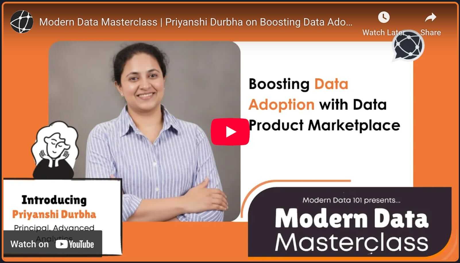 This piece is an overview of a Modern Data Masterclass:Boosting Data Adoption with Data Product Marketplaces by Priyanshi Durbha.Jump to MasterclassAbout Host: Priyanshi Durbha | Principal, Advanced AnalyticsPriyanshi is a Principal of Advanced Analytics at The Modern Data Company, where she partners with enterprises to help them unlock the full potential of their data through DataOS. With over a decade of experience spanning analytics, data science, and business strategy, she has built a career at the intersection of insight and impact. Before joining Modern, Priyanshi led the Analytics Practice at AKIRA Insights, scaling it into a core business function by fostering high-performing teams and delivering transformative client solutions. Her earlier stints at AB InBev, Deloitte, and Mu Sigma shaped her expertise in advanced analytics, stakeholder alignment, and data-driven storytelling.