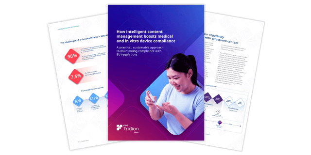 Traditional documentation processes slow down regulatory compliance efforts. It's time to explore the advantages of shifting from a conventional document-based approach to a structured content process to satisfy EU MDR and IVDR requirements.. Read this whitepaper to gain in-depth insights on how structured content can revolutionize your organization by enabling you to:. Accelerate innovation and launch medical and in vitro devices faster Automate content reuse across IFUs, SS(C)Ps and more Ensure ongoing multilingual content consistency and traceability